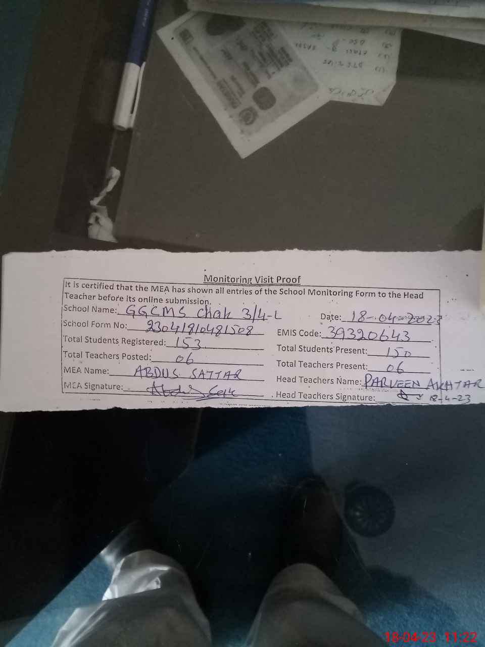 | Attendance Register | Head Teacher | MEA with School | Visit Proof |