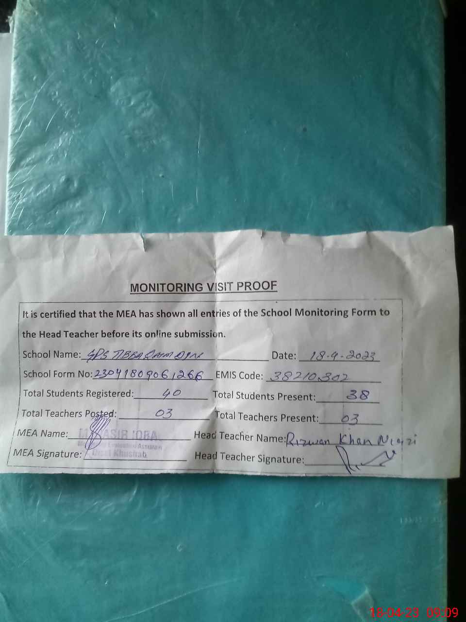 | EMIS Code: 38210302 | Name of School: GPS TIBBA QAIM DIN | |||