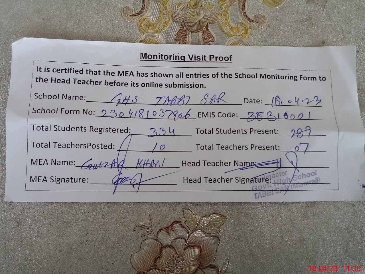 | EMIS Code: 38310001 | Name of School: GHS TABBI SAR | |||