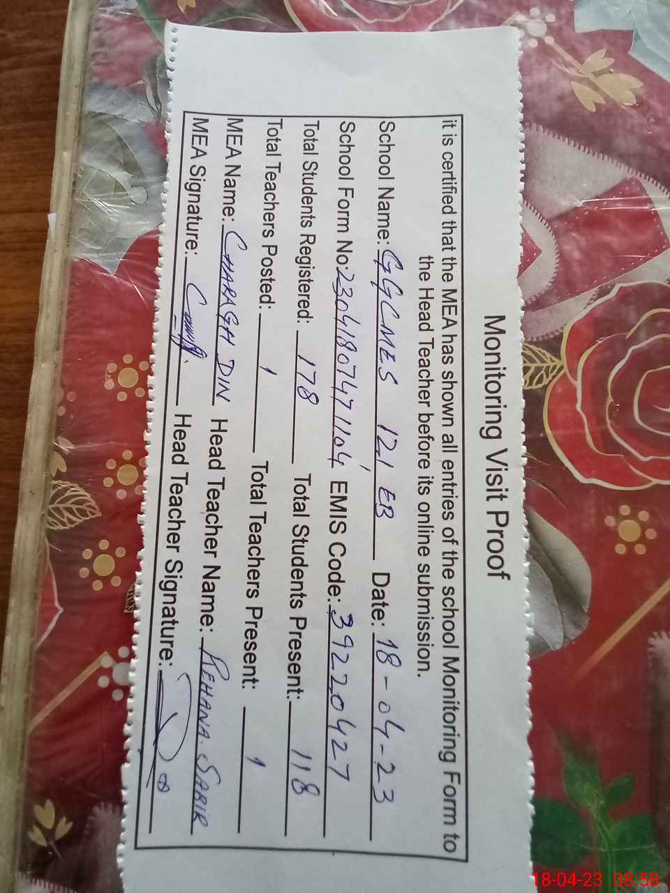 | EMIS Code: 39220427 | Name of School: GGCMES 121 EB | |||