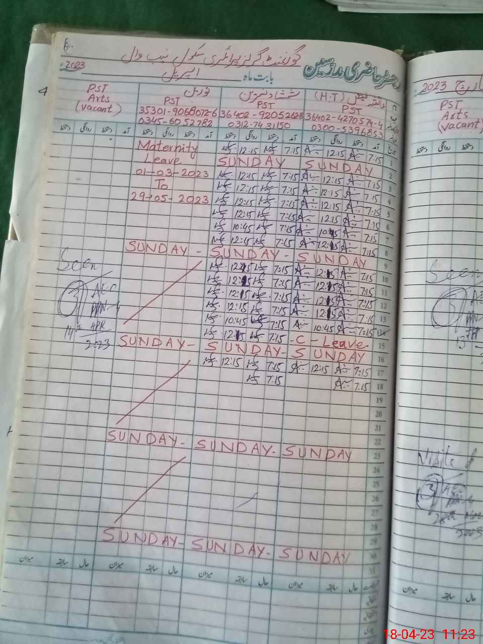 | Name: AY**** FA**** Designation: (School Headmaster's/Headmistress's) PST Phone/Cell Number: 03**** |