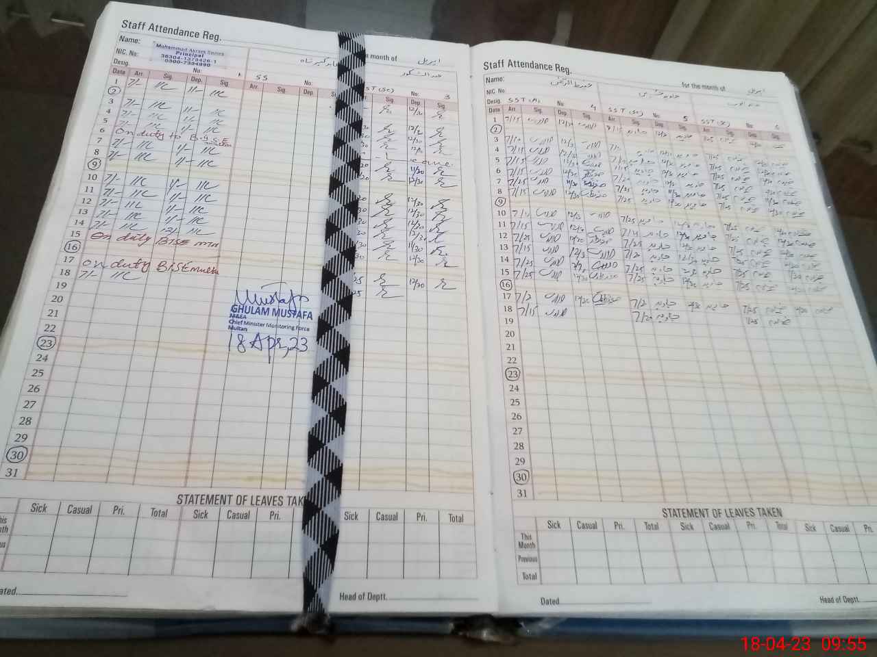| Name: SA**** AB**** HU**** SH**** Designation: (School Headmaster's/Headmistress's) IN CHARGE SSS ARABIC Phone/Cell Number: 03**** |
