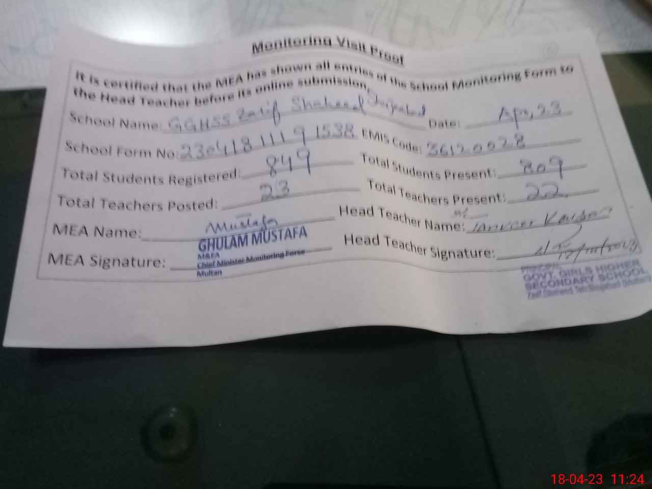 | Monitoring Date: 18-04-2023 | Start Time: 18-04-2023 10:43 AM | End Time: 18-04-2023 11:25 AM | Name of MEA: Gh**** Mu**** | |