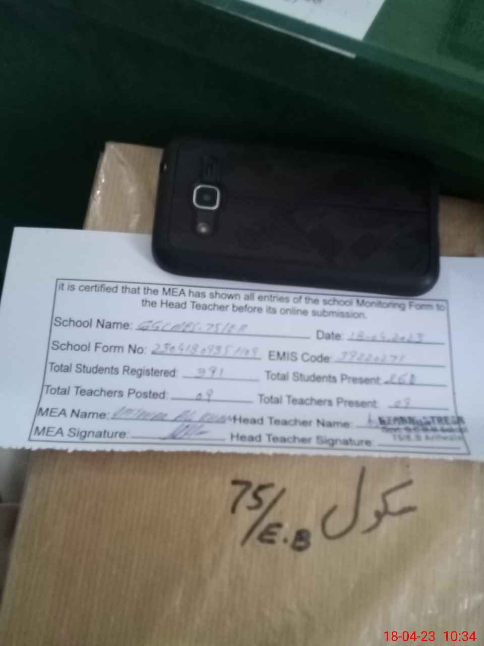 | Name: AI**** MU**** Designation: (School Headmaster's/Headmistress's) SST (SCIENCE) Phone/Cell Number: 03**** |