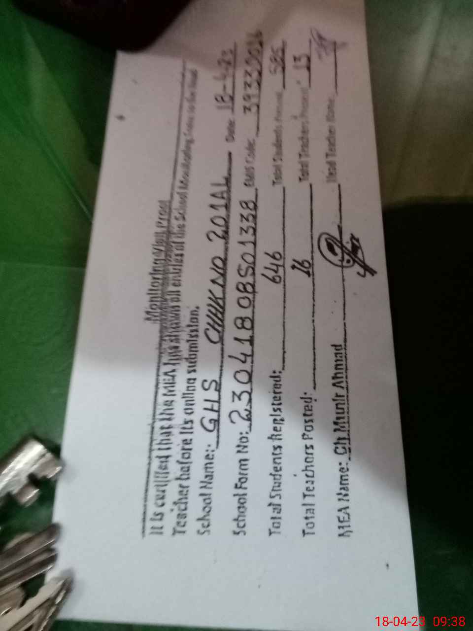 | Name: Aj**** Ah**** Designation: (School Headmaster's/Headmistress's) Headmaster Phone/Cell Number: 03**** |