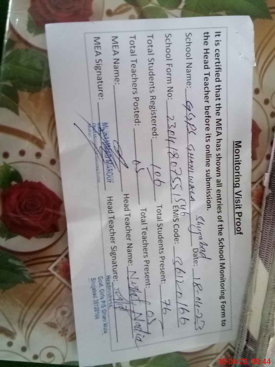 | EMIS Code: 36120166 | Name of School: GGPS CHAH GHANI WALA SHUAJABAD | |||