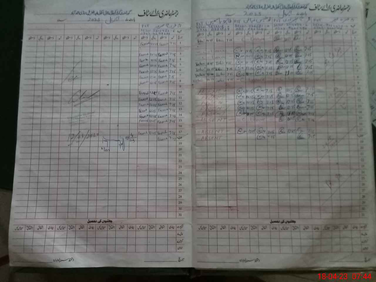 | CNIC | Full Name | Designation | R/C | Absence During Last Calender Month |
