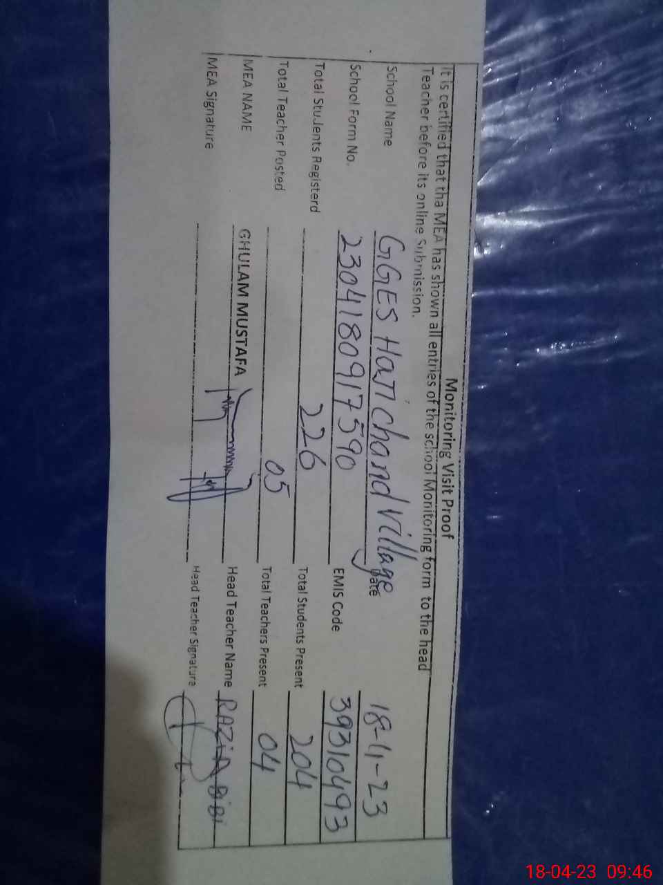 | EMIS Code: 39310493 | Name of School: GGES HAJI CHAND VILLAGE | |||