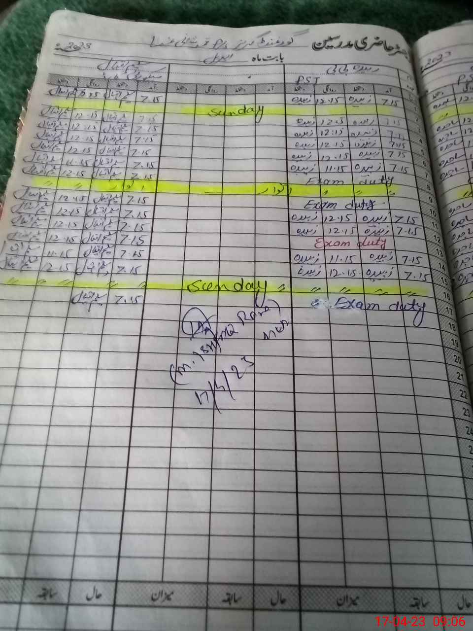 | 38**** | Zu**** Bi**** | PST | Regular | 0 | 0 | 0 | 0 | 0 | 0 | 0 | 0 | 0 | Exam Duty |