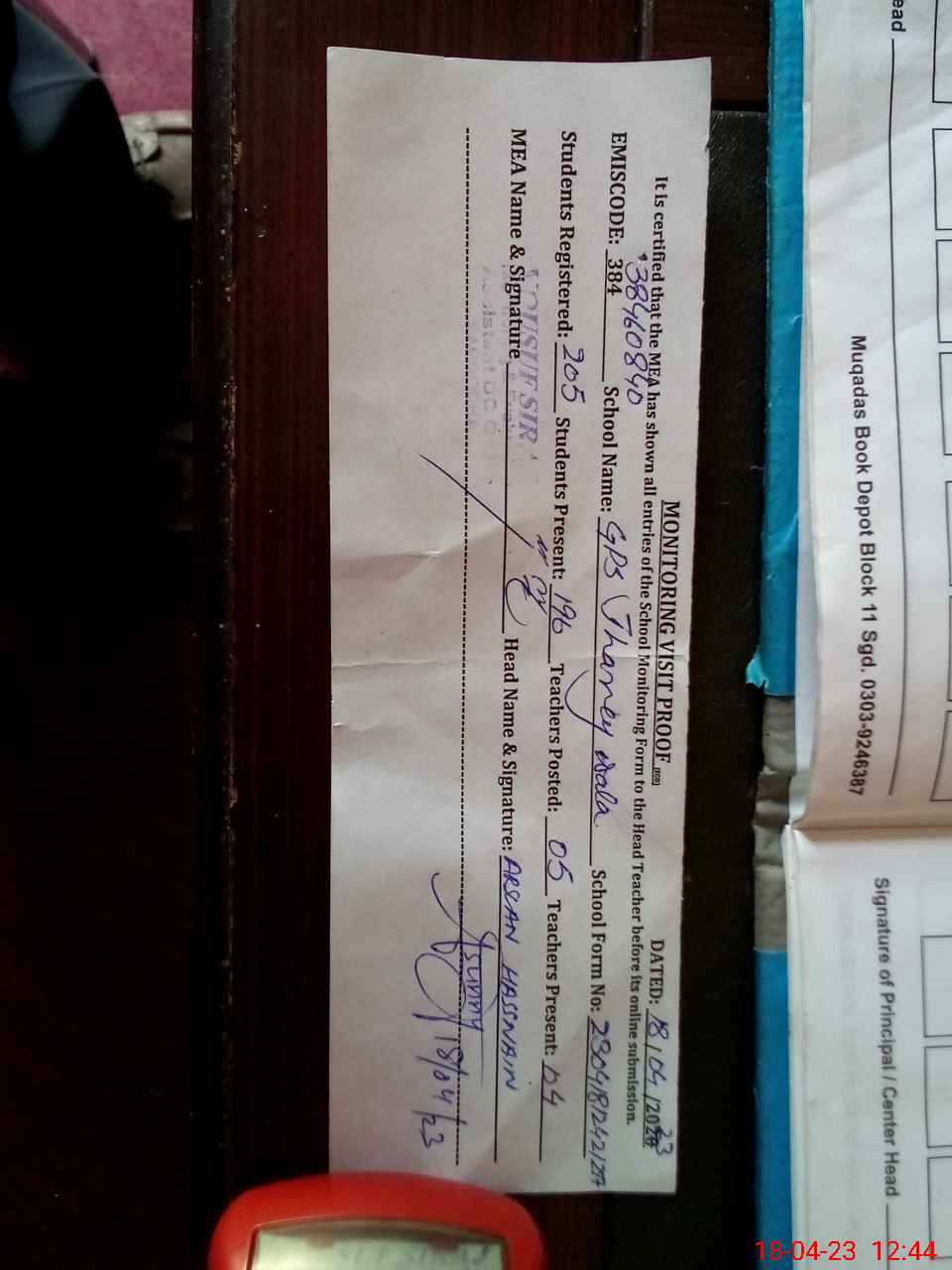| EMIS Code: 38460840 | Name of School: GPS JHAREY WALA | |||