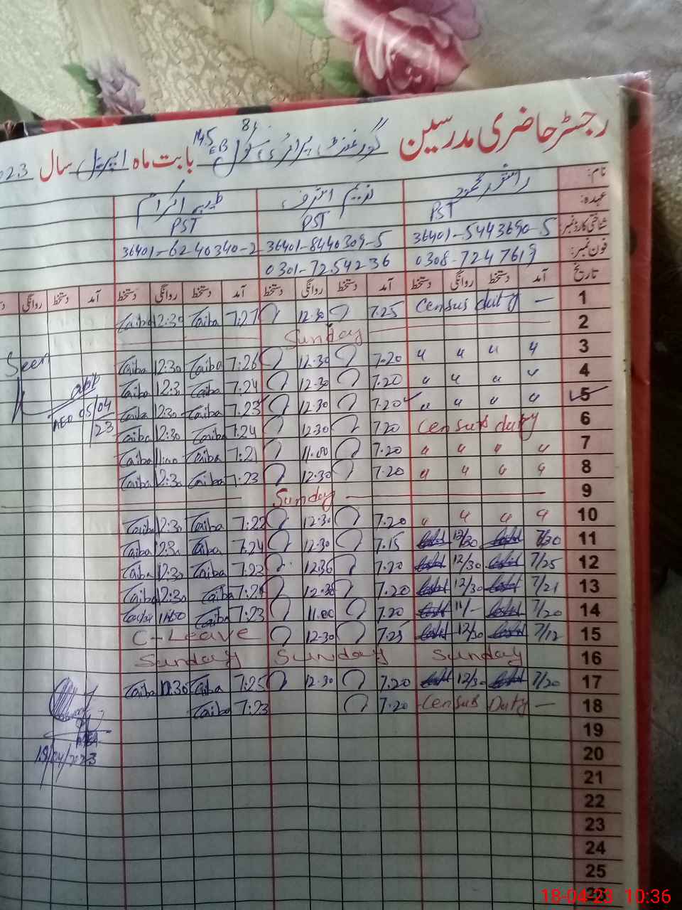 | Name: RA**** MA**** Designation: (School Headmaster's/Headmistress's) PST Phone/Cell Number: 03**** |