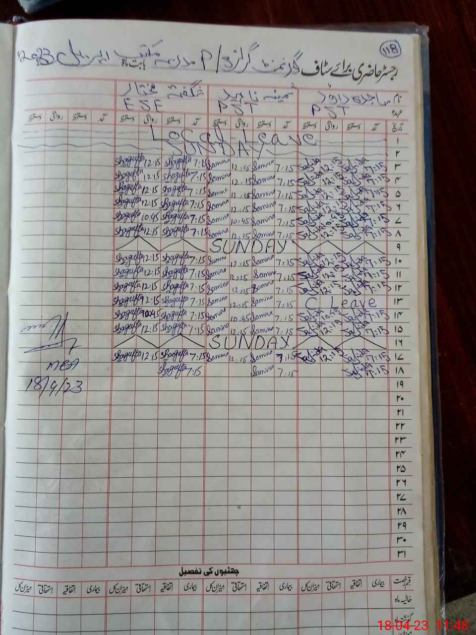 | CNIC | Full Name | Designation | R/C | Absence During Last Calender Month |