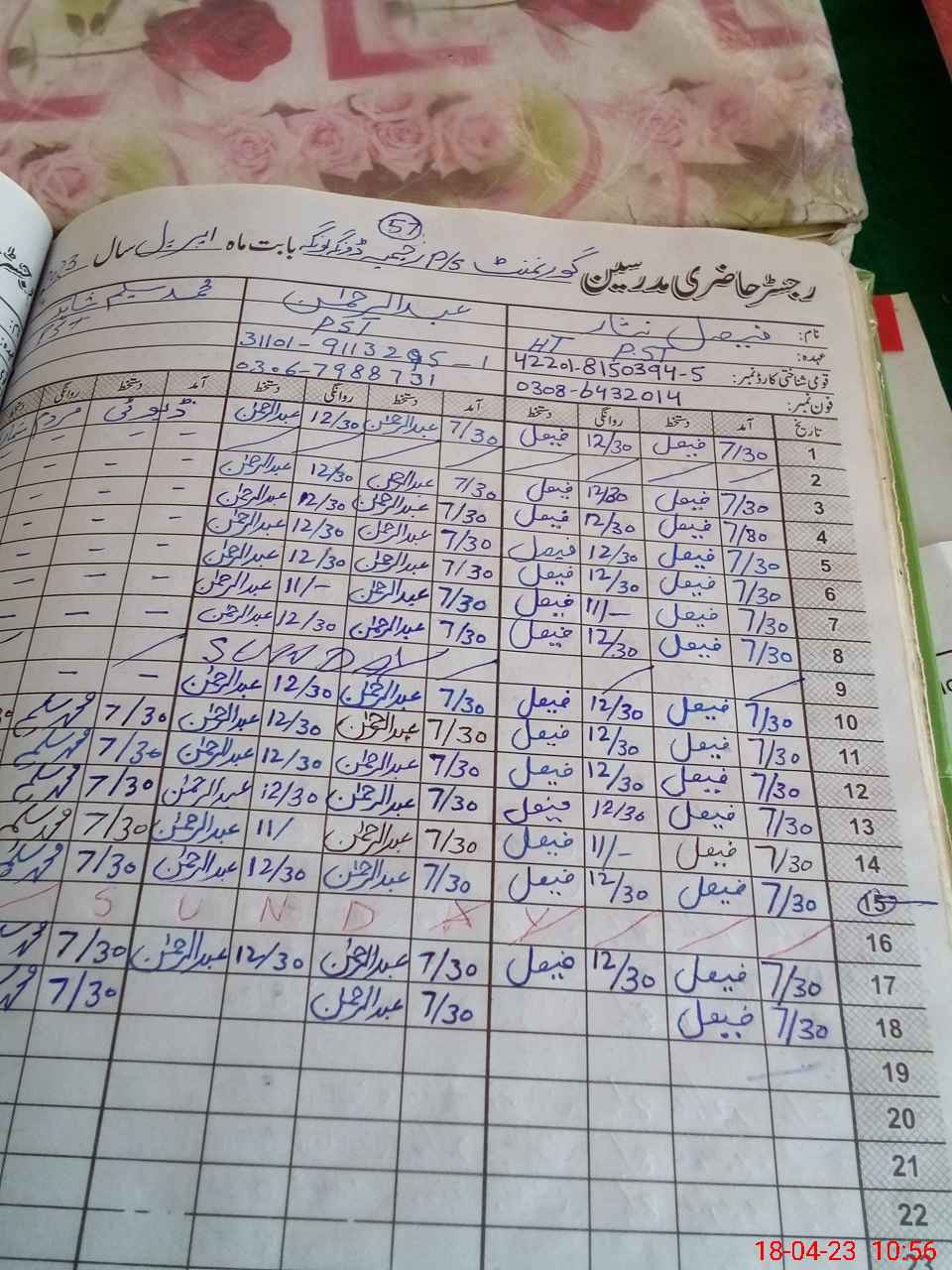 | CNIC | Full Name | Designation | R/C | Absence During Last Calender Month |