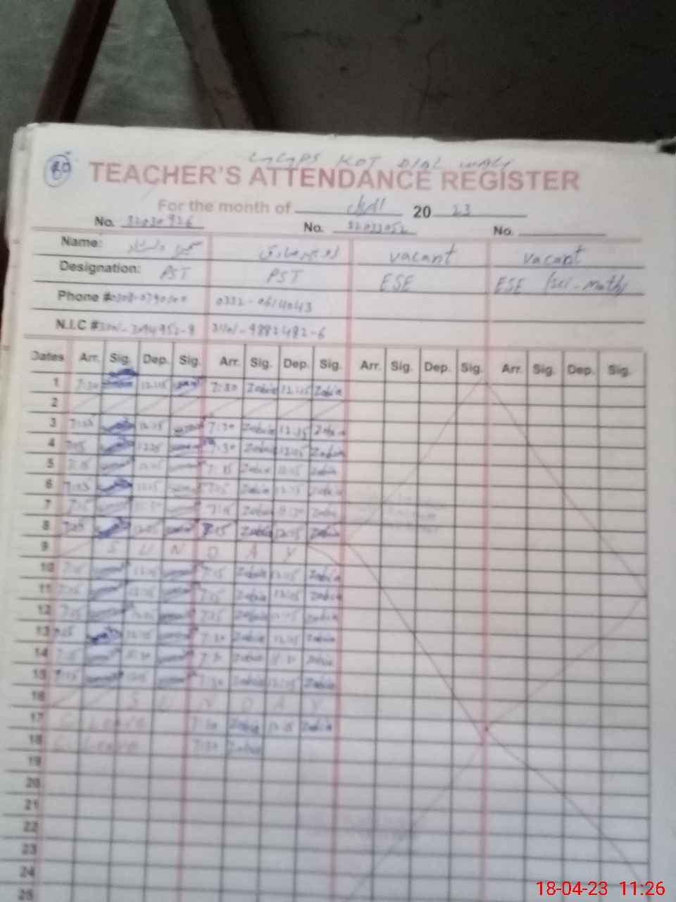 | Name: ZO**** SA**** Designation: (School Headmaster's/Headmistress's) ESE Sci Phone/Cell Number: 03**** |