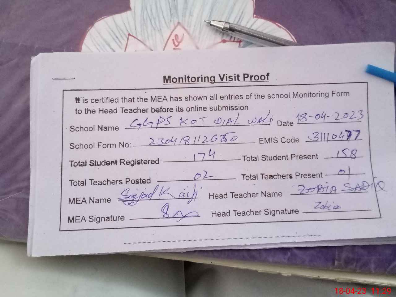| EMIS Code: 31110477 | Name of School: GGPS KOT DIAL WALI | |||