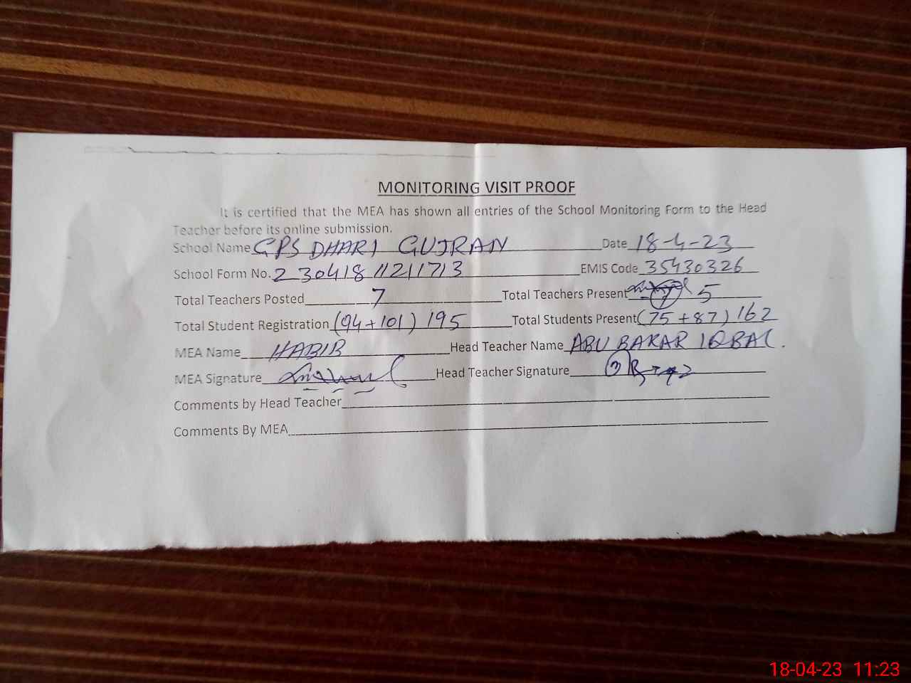 | EMIS Code: 35430326 | Name of School: GPS DHAARI GUJRAN | |||