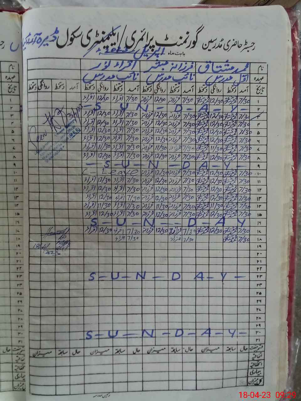| CNIC | Full Name | Designation | R/C | Absence During Last Calender Month |