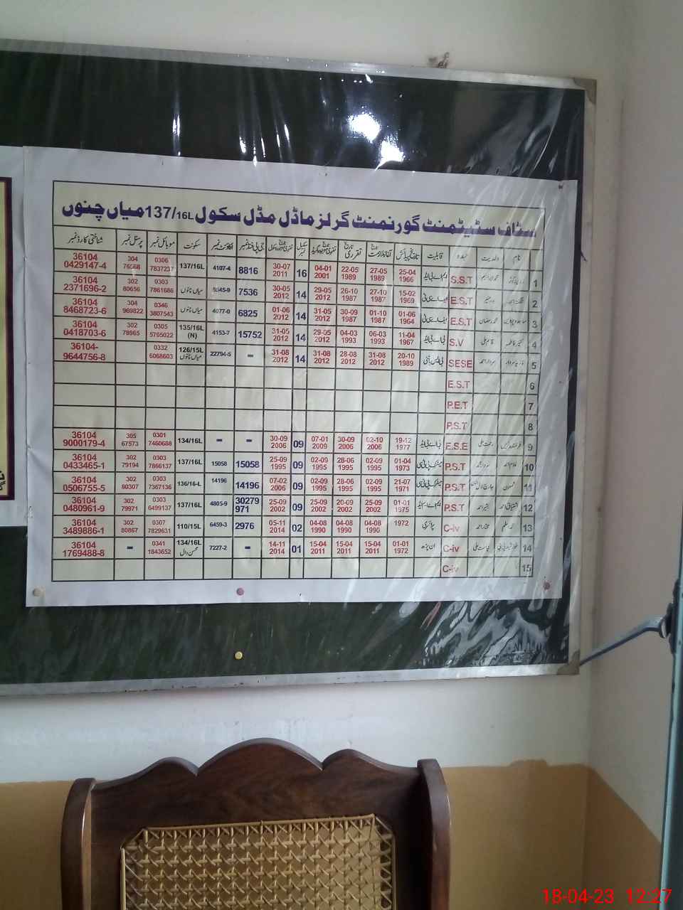 | EMIS Code: 36430331 | Name of School: GMES 137/16-L, MIAN CHANNU | |||