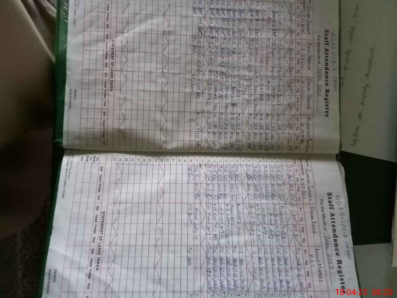 | Monitoring Date: 18-04-2023 | Start Time: 18-04-2023 08:18 AM | End Time: 18-04-2023 09:04 AM | Name of MEA: AB**** RE**** | |