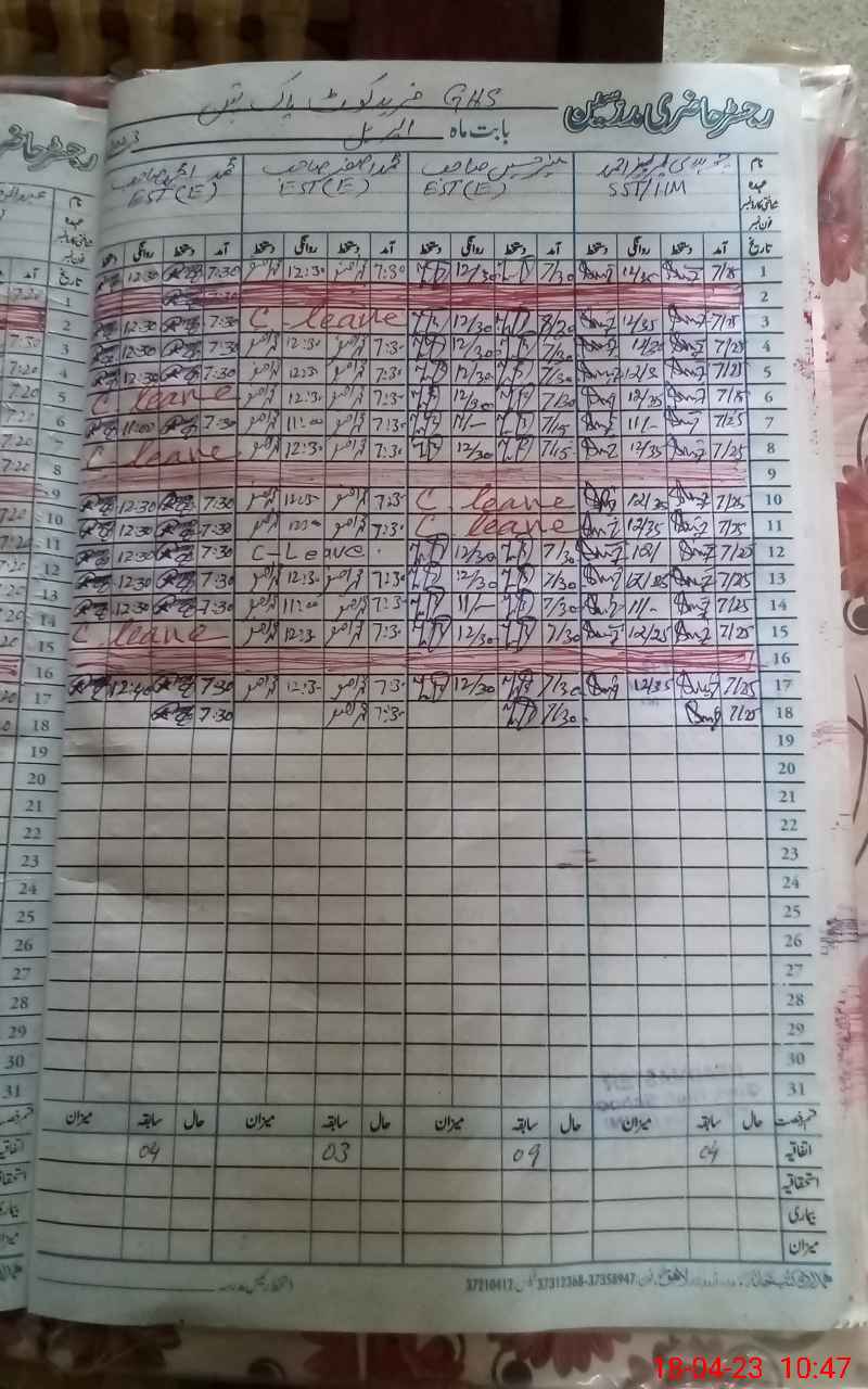 | CNIC | Full Name | Designation | R/C | Absence During Last Calender Month |