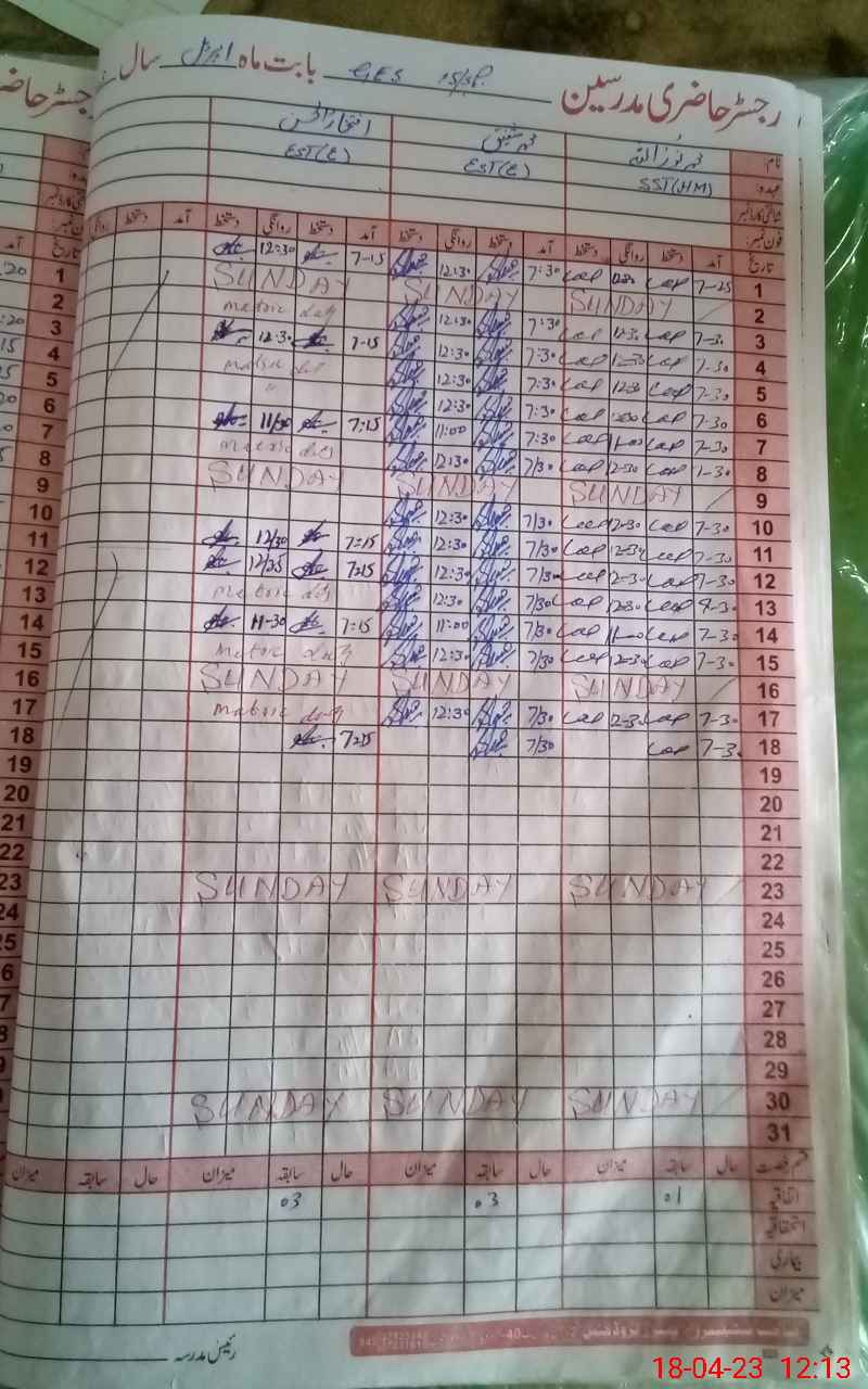 | Name: Kh**** Fa**** Designation: (School Headmaster's/Headmistress's) EST Phone/Cell Number: 03**** |