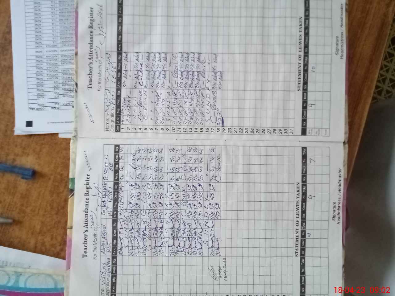 | Remarks (Use Separate Page if Required): Teacher Muhammad Shafiq was late he entered in school at 0850hrs | |||||