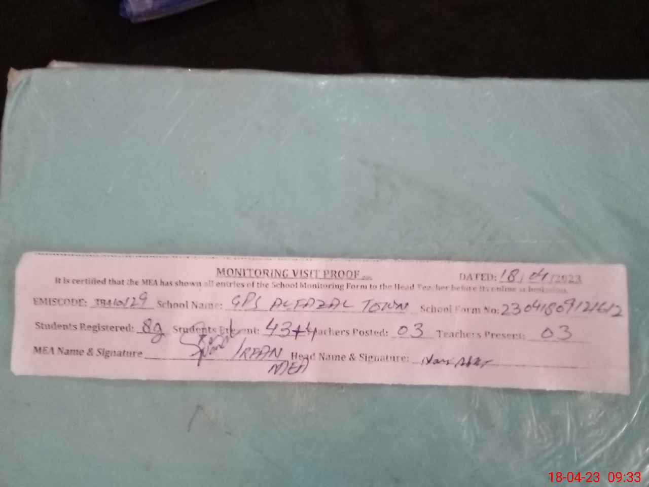 | EMIS Code: 38410129 | Name of School: GPS MADRISA TUL ISLAMIA AL-FAZAL TOWN BHALWAL | |||