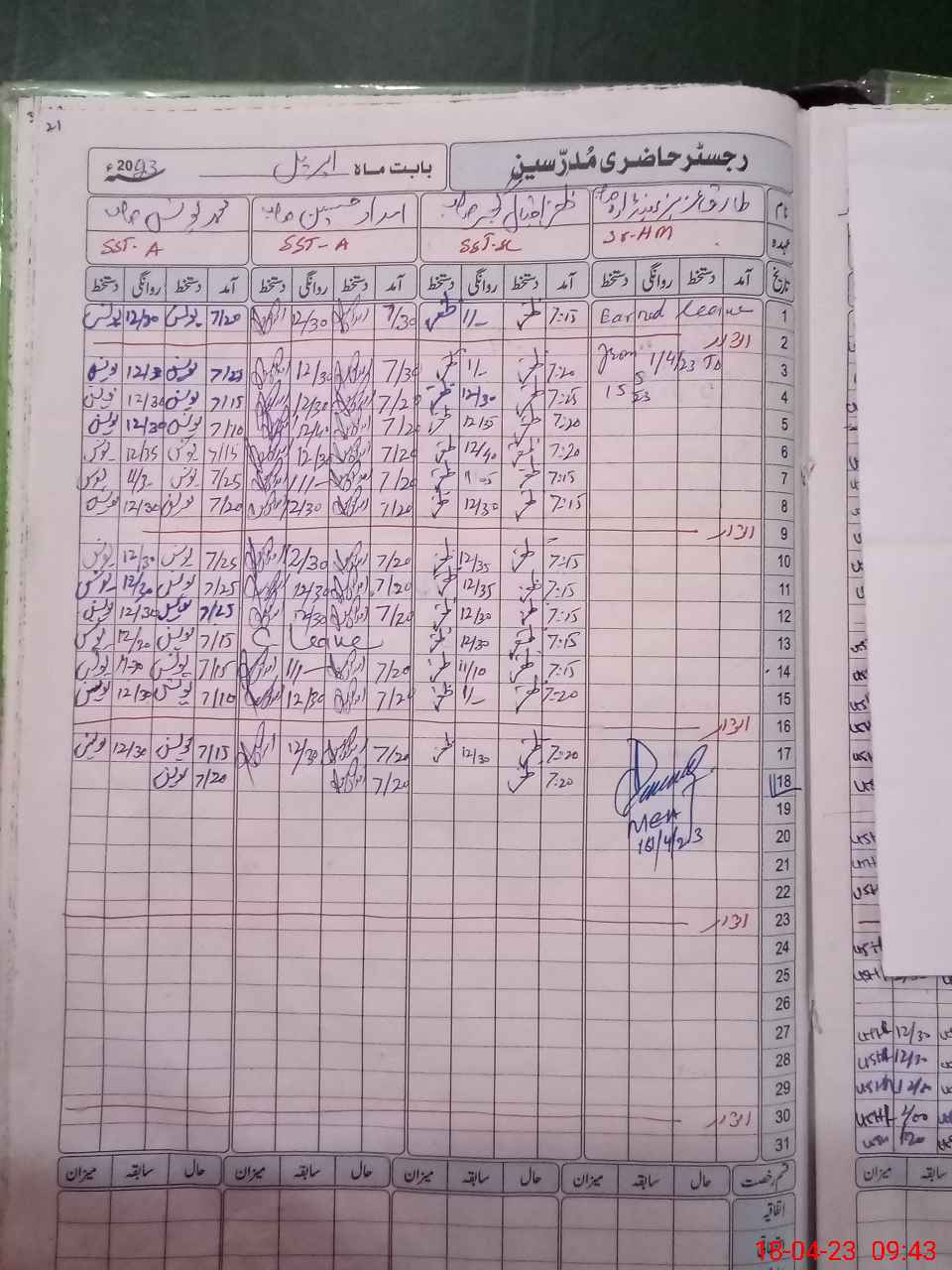 | CNIC | Full Name | Designation | R/C | Absence During Last Calender Month |