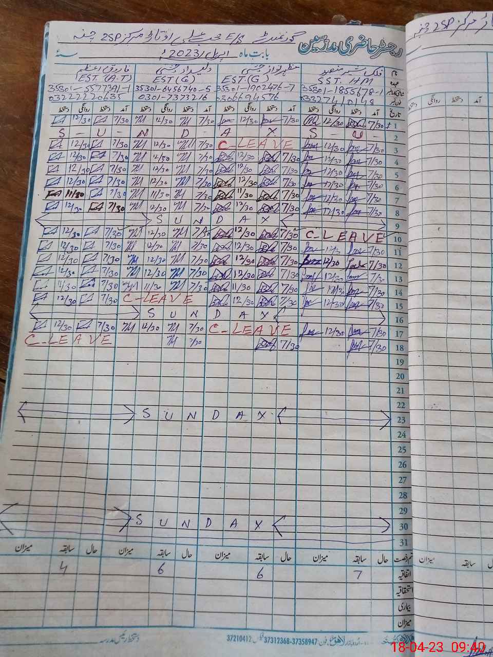 | CNIC | Full Name | Designation | R/C | Absence During Last Calender Month |