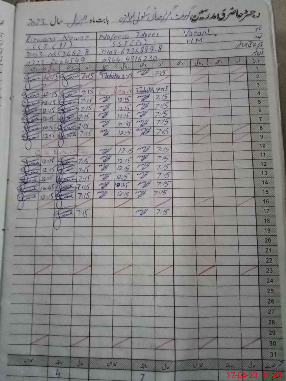 | Name: Mu**** BiBi Designation: (School Headmaster's/Headmistress's) H M Phone/Cell Number: 03**** |
