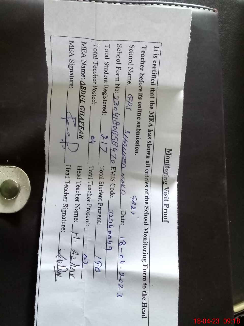 | EMIS Code: 32340049 | Name of School: GPS SHAHEED MARD GHAZI | |||