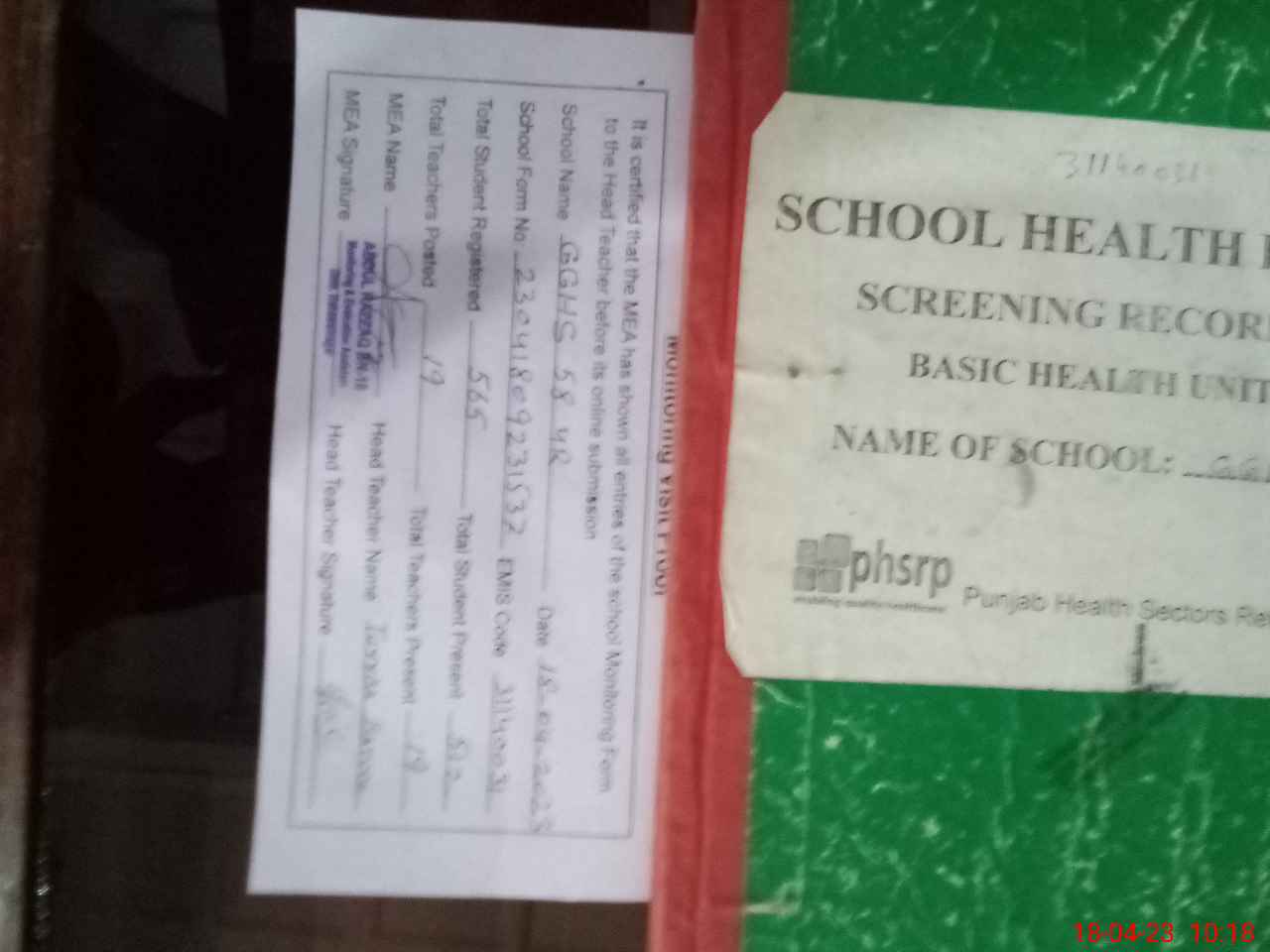 | EMIS Code: 31140031 | Name of School: GGHS CHAK NO.58/4-R | |||
