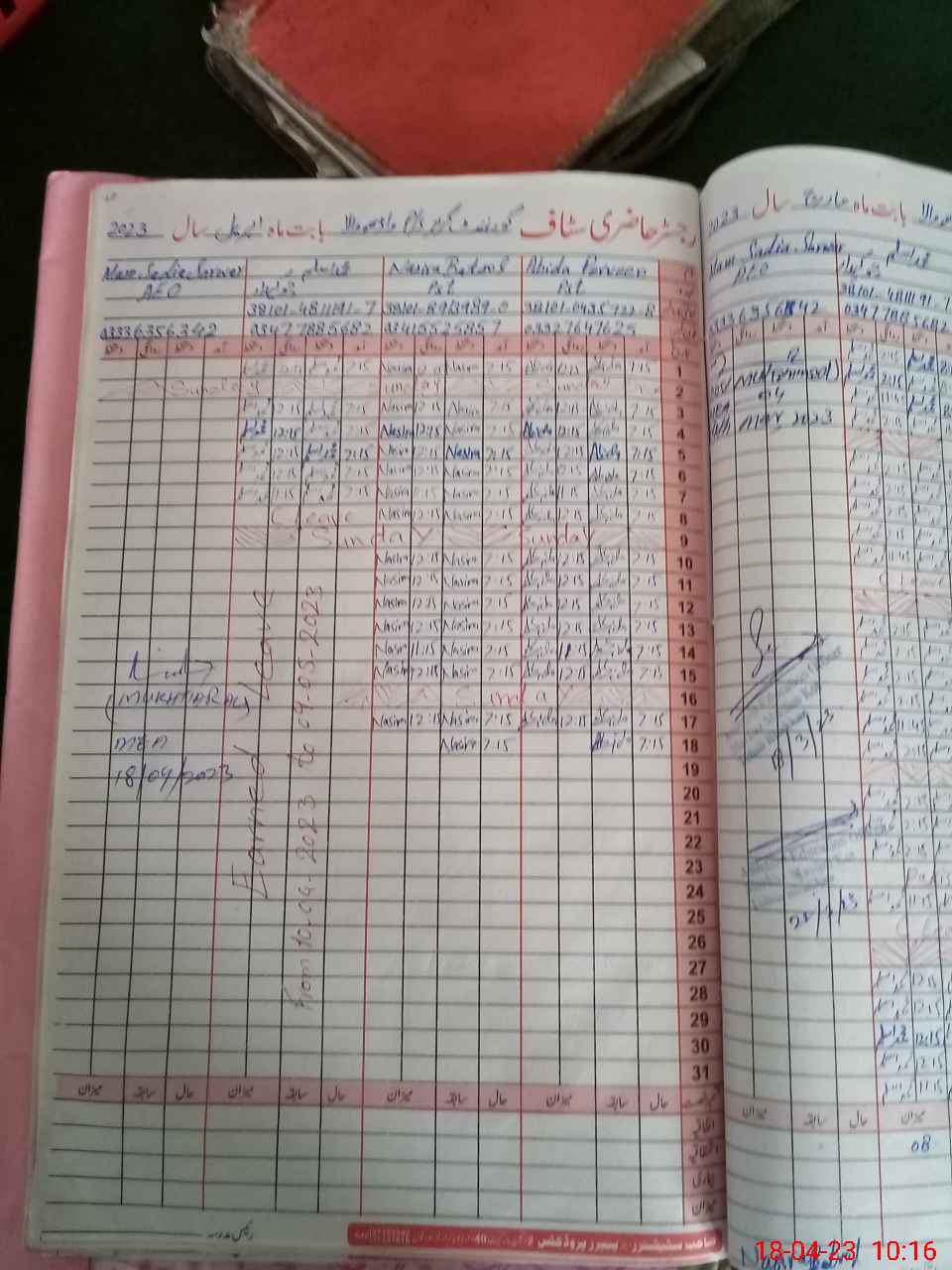 | CNIC | Full Name | Designation | R/C | Absence During Last Calender Month |