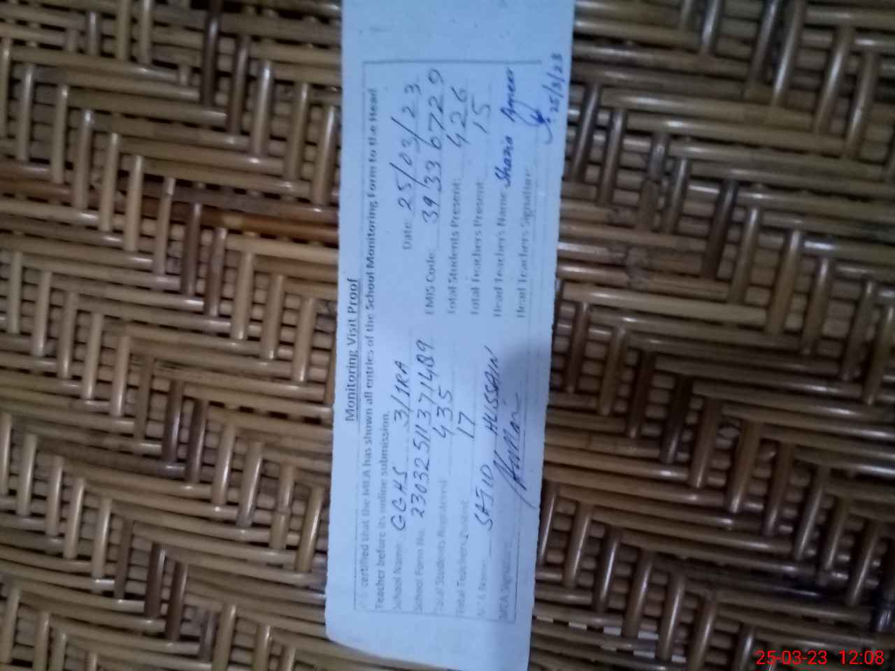 | Name: Hi**** Iq**** Designation: (School Headmaster's/Headmistress's) S.S.T. Sci Phone/Cell Number: 03**** |