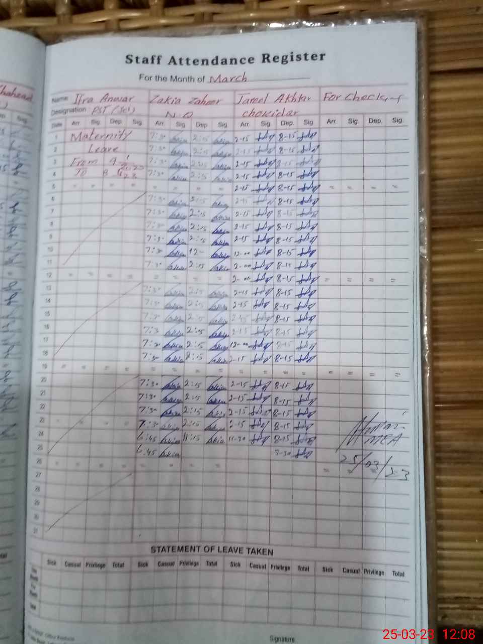 | Attendance Register | Head Teacher | MEA with School | Visit Proof |