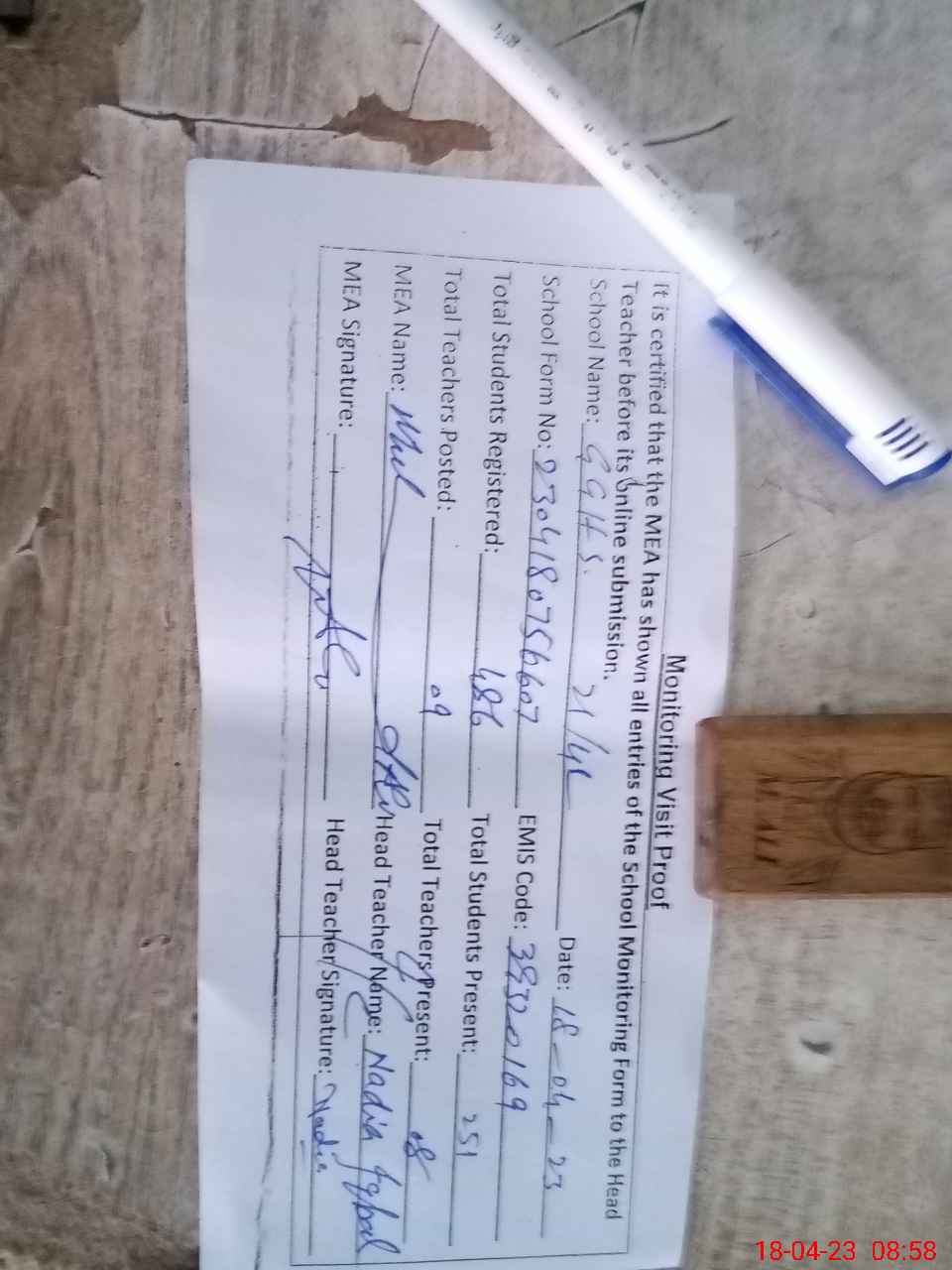 | EMIS Code: 39320169 | Name of School: GGHS CHAK NO. 21/4-L | |||