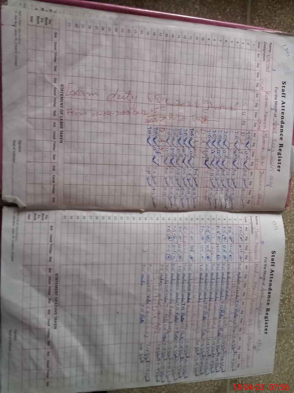 | 35**** | Ro**** No**** | SST | Regular | 0 | 0 | 0 | 0 | 0 | 0 | 0 | 0 | 0 | Exam Duty |