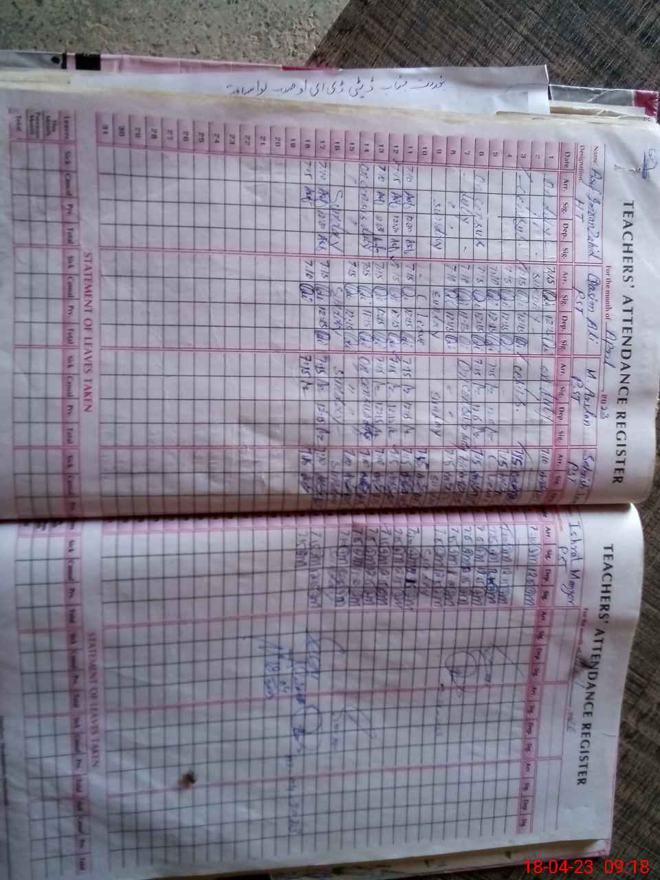 | Name: As**** Im**** Za**** Designation: (School Headmaster's/Headmistress's) PST Phone/Cell Number: 03**** |