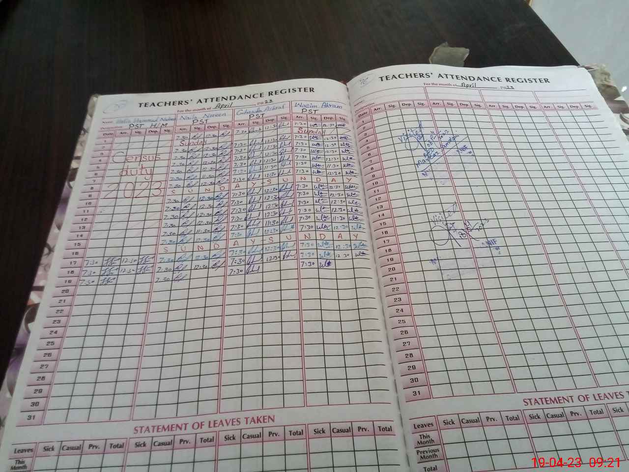 | Leave | Duty | Absent | Maternity | Medical | Ex- Pak |