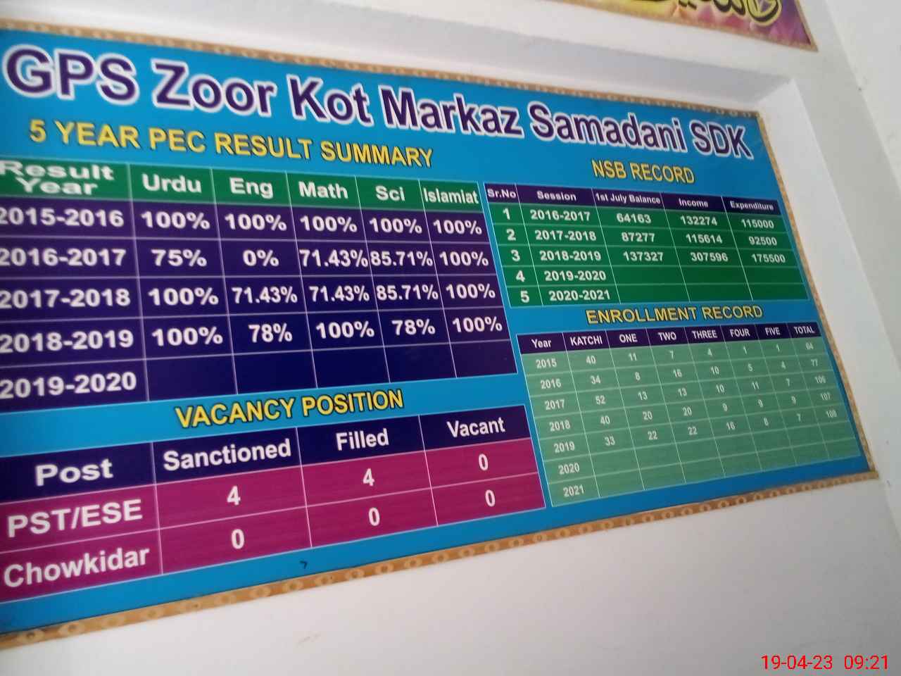 | EMIS Code: 31340108 | Name of School: GPS ZOOR KOT | |||
