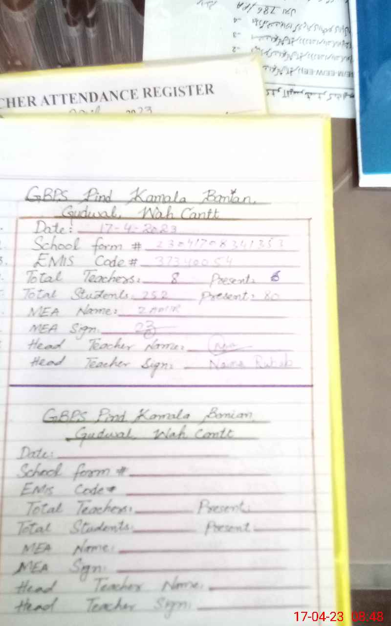 | EMIS Code: 37340054 | Name of School: GPS PIND KAMALA BANIAN | |||