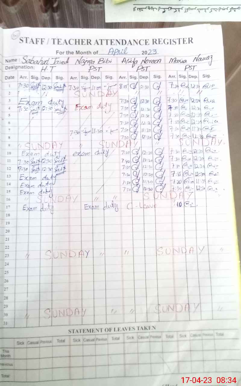 | 37**** | Na**** Bi**** | PST | Regular | 0 | 0 | 0 | 0 | 0 | 0 | 0 | 0 | 0 | Exam Duty |