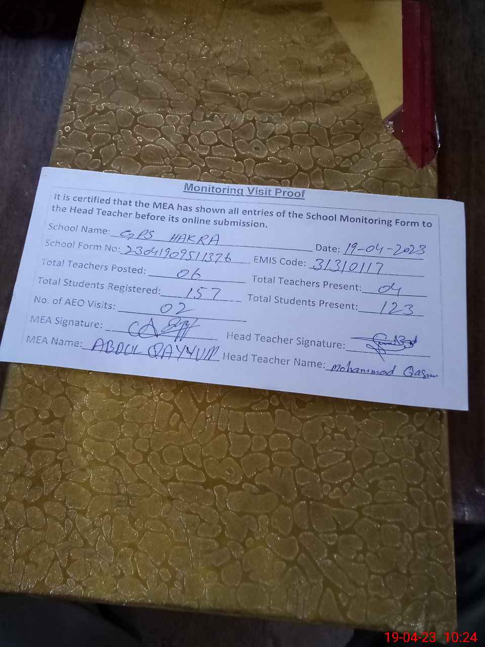 | EMIS Code: 31310117 | Name of School: GPS HAKRA | |||