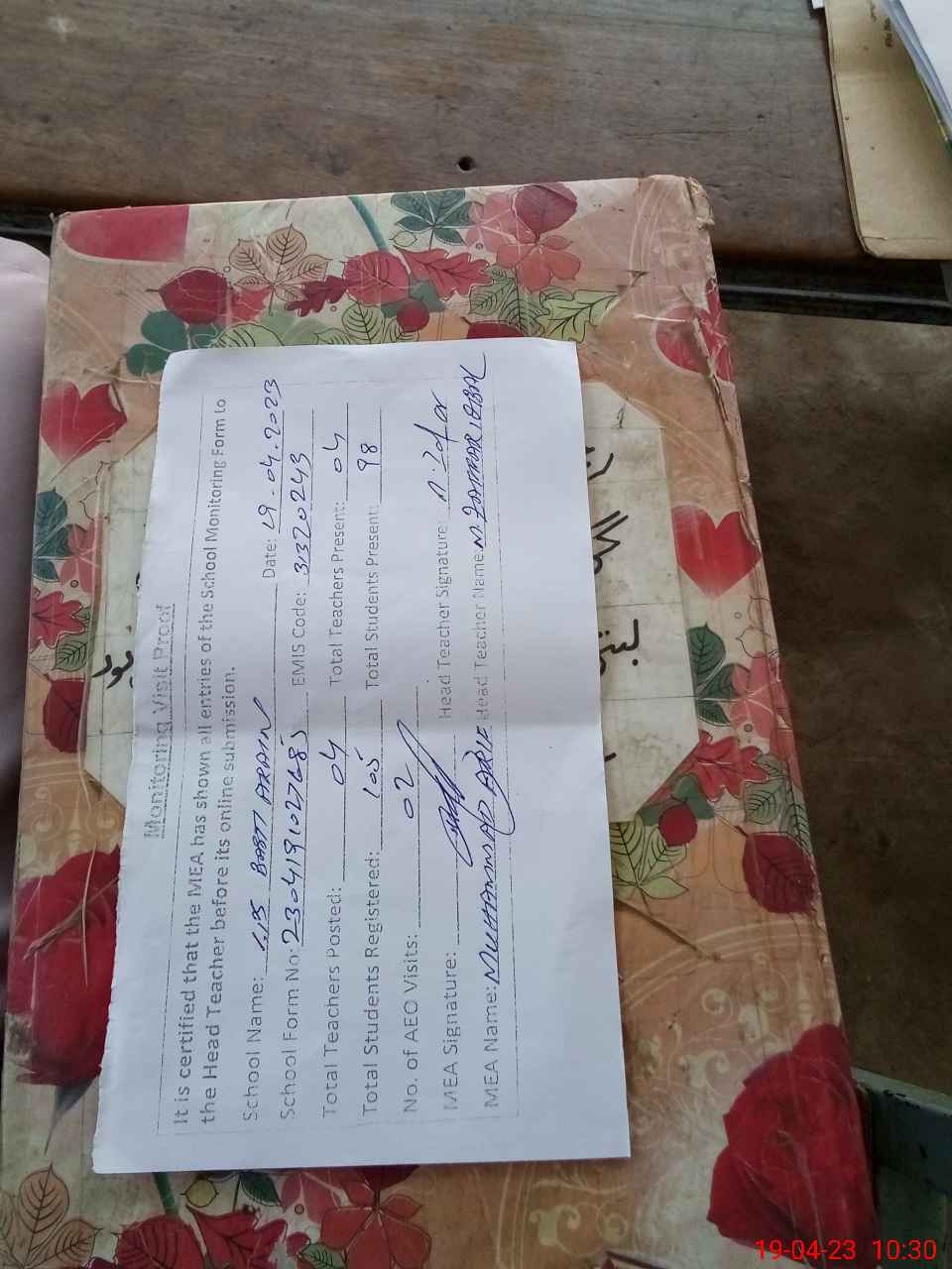 | EMIS Code: 31320243 | Name of School: GPS BASTI ARAIN | |||