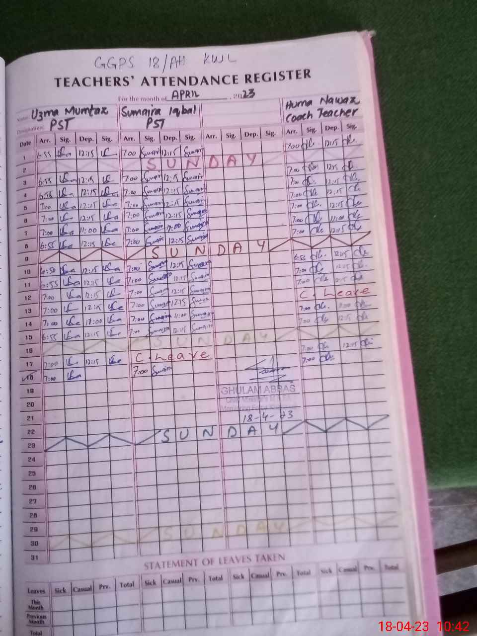 | Leave | Duty | Absent | Maternity | Medical | Ex- Pak |