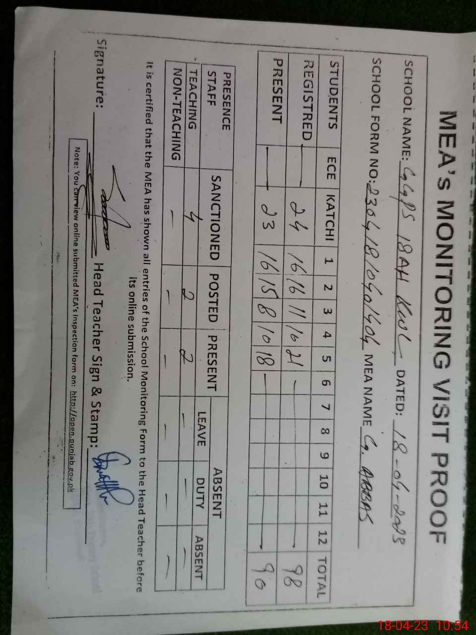 | EMIS Code: 36420396 | Name of School: GGPS 18/AH, KHANEWAL | |||