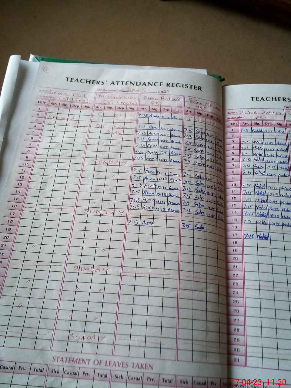 | 38**** | Mu**** Ka**** | Regular | 2 | 0 | 0 | 0 | 0 | 0 | 0 | 0 | 2 | Exam Duty | |