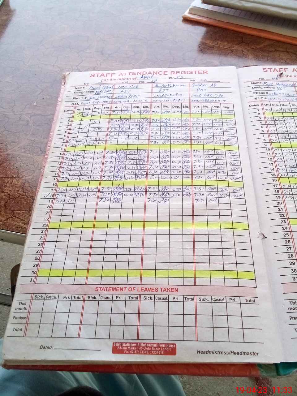 | Name: AS**** IQ**** Designation: (School Headmaster's/Headmistress's) PST Phone/Cell Number: 03**** |