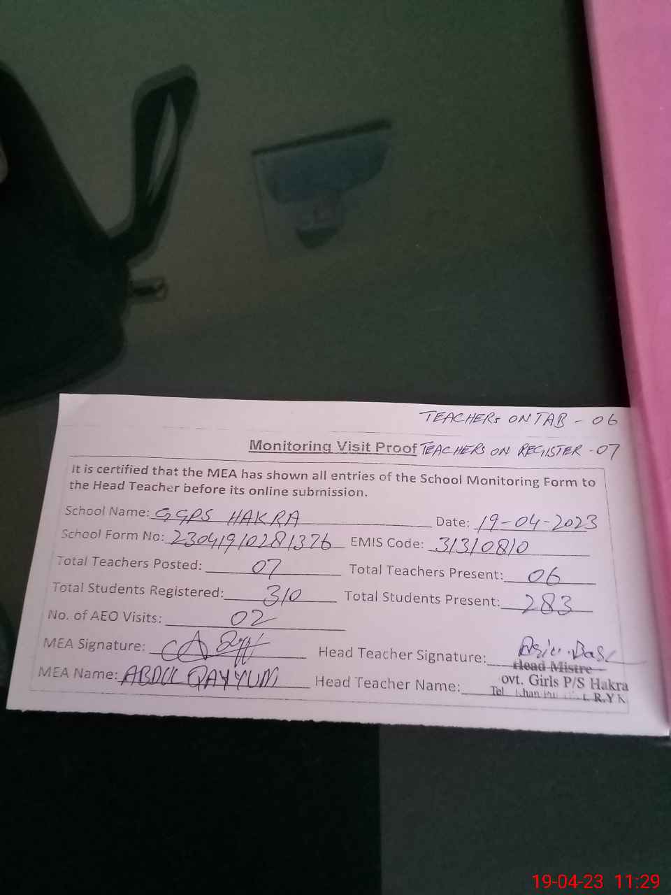 | EMIS Code: 31310810 | Name of School: GGPS HAKRA | |||
