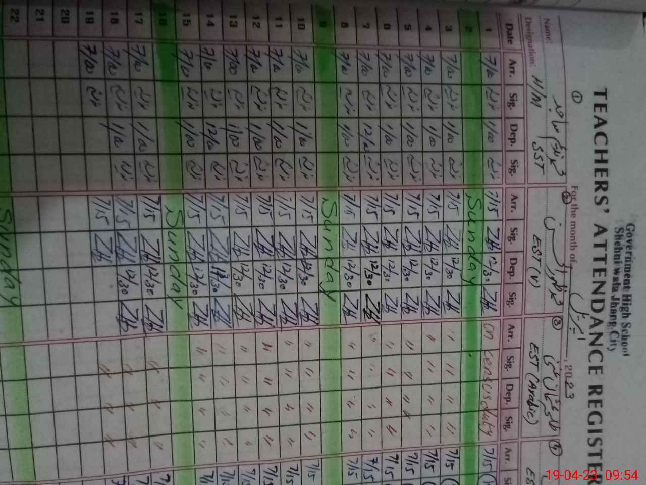 | CNIC | Full Name | Designation | R/C | Absence During Last Calender Month |
